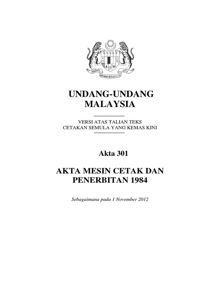 Akta mesin cetak dan penerbitan 1984 pdf. Akta 301 akta mesin cetak dan penerbitan 1984 susunan seksyen ba h a g i a n i permulaan seksyen 1. Akta301 akta mesin cetak dan penerbitan 1984 pdf. 5 mesin cetak dan penerbitan undang undang malaysia akta 301 akta mesin cetak dan penerbitan 1984 suatu akta untuk mengawal selia penggunaan mesin cetak dan pencetakan pengimportan penghasilan penghasilan semula penerbitan dan pengedaran hasil penerbitan dan mengenai perkara perkara yang berkaitan dengannya. 1 september 1984 p u.
