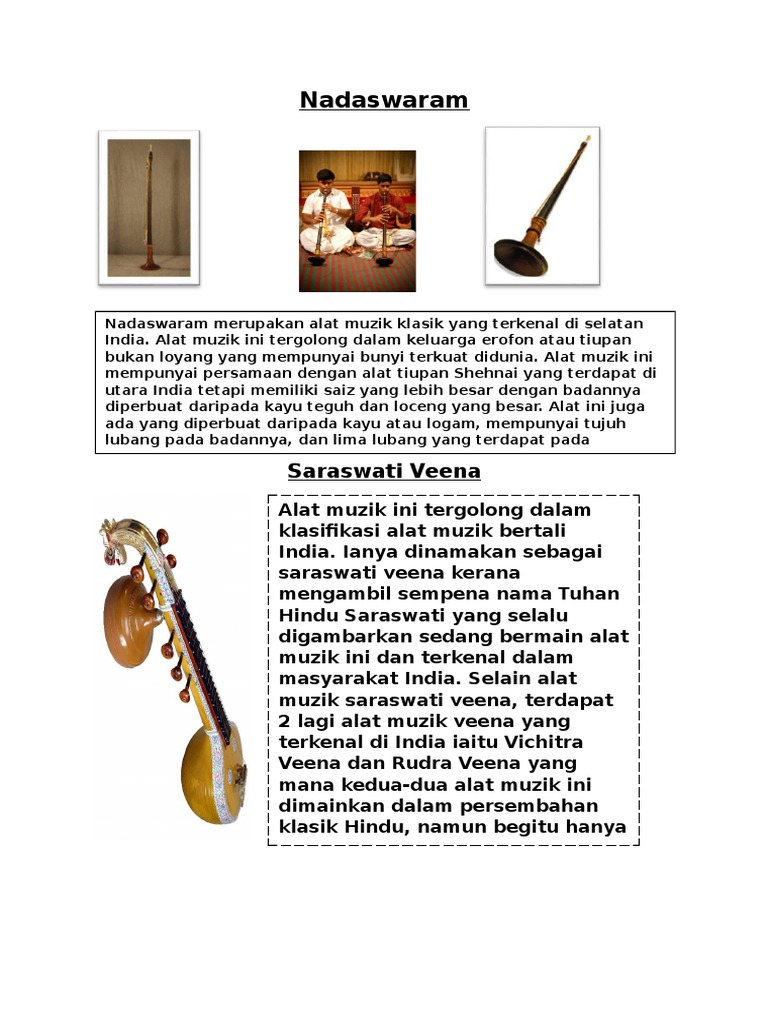 Alat muzik ini mempunyai persamaan dengan alat tiupan shehnai yang terdapat di utara india tetapi memiliki saiz yang lebih besar dengan badannya diperbuat daripada kayu teguh dan loceng yang besar. Alat muzik ini mempunyai persamaan dengan alat tiupan shehnai yang terdapat di utara india tetapi memiliki saiz yang lebih besar dengan badannya diperbuat daripada kayu teguh dan loceng yang besar. Mari belajar alat alat muzik masyarakat india mari belajar alat alat muzik masyarakat india alat muzik kaum india india seni dan budaya malaysia dunia pendidikan muzik alat muzik tradisional india alat muzik tradisional masyarakat india pdf document muzik tradisional india sivik dan kewarganegaraan tingkatan 1 2 dan 3 alat muzik tradisional kaum india pptx youtube. Dholak ialah sejenis alat gendang dua muka berbentuk tong yang dikategorikan sebagai alat membranofon.