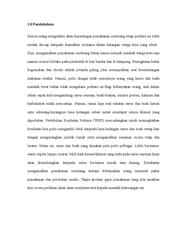Amalan pemakanan yang tidak sihat karangan. Kurang bersenam serta amalan pemakanan tidak sihat antara punca masyarakat malaysia terdedah kepada risiko penyakit sindrom metabolik kata pakar kardiologi klinikal insititut jantung negara dr lim kien chien. 60 bersetuju kerana sekarang terdapat banyak kedai makan segera di merata rata tempat seperti kfc macdonald pizza hut dan sebagainya mereka tidak mengendahkan pemakanang yang seimbang dan sihat manakala sebanyak 40 tidak bersetuju dengan permasalahan ini. Kita juga dapat mempraktikkan amalan pemakanan yang betul berpandukan piramid makan untuk memastikan tubuh badan kita sentiasa sihat. Badan cergas otak cerdas.