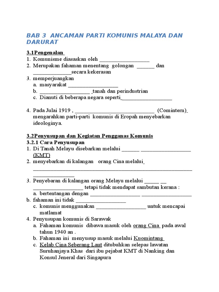 Selain itu kita juga akan melihat kesungguhan kerajaan membanteras ancaman. Pkm ditubuhkan di tanah melayu pada tahun 1930 dan merupakan pecahan daripada parti komunis nanyang yang pulak adalah cawangan daripada parti komunis china. Bab 3 ancaman parti komunis malaya dan darurat komunis diasaskan di jerman oleh karl marx pada abad ke 19. Ramai anggota pasukan keselamatan pengganas komunis dan orang awam terkorban.
