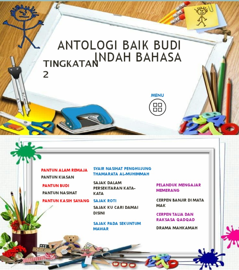 Antologi baik budi indah bahasa tingkatan 2. Komsas bm bahasa melayu tingkatan 2 mulai tahun 2016 komponen sastera dan novel bm bahasa melayu. Course description komsas merupakan komponen dalam subjek bahasa melayu yang diperkenalkan oleh pusat perkembangan kurikulum kementerian pelajaran malaysia untuk pelajar tingkatan 1 5 di di semua sekolah menengah. Analisis kuingin berterima kasih.