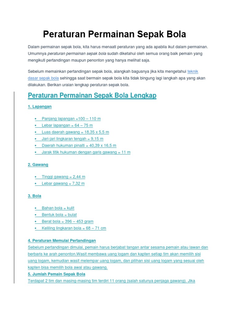 Lebar 64 75 meter. Peraturan dalam permainan sepak bola pada materi pelajaran olahraga atau pendidikan jasmani dan kesehatan penjaskes pasti pernah diajarkan mengenai materi olahraga sepak bola. Selanjutnya peraturan dalam permainan bola basket yang kurang banyak diketahui adalah peraturan dengan nama back ball atau back court peraturan ini menjelaskan suatu keadaan pelanggaran yang ditujukan dengan nama yang sama seperti disebutkan di atas. Ketika belum ada peraturan tentang permainan sepak bola olahraga ini cenderung bermain kasar dan.
