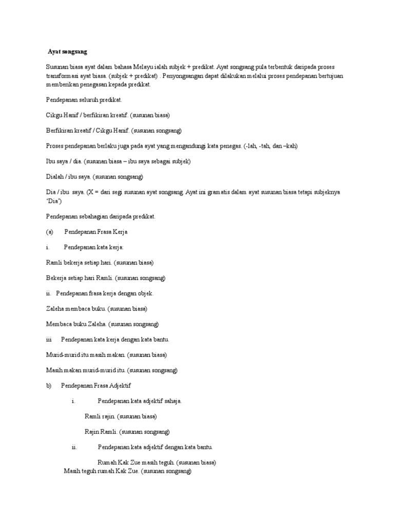 Ayat susunan biasa ke songsang spm. Ayat susunan songsang susunan biasa subjek predikat dia hatinya belum terlambat penyesalannya surat itu yang datang tadi kakak sulung. Subjek predikat. Susunan ayat biasa dan susunan ayat songsang 1. Susunan songsang dia ibu saya.