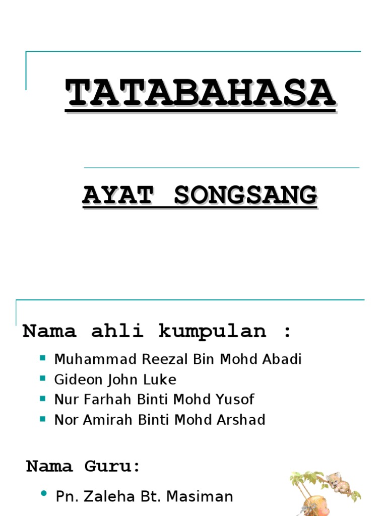 Namun begitu ada masanya susunan ini boleh diterbalikkan atau disongsangkan. Cara mencapai kecemerlangan spm terbitan preston kuala lumpur 1994. Subjek di depan dan predikat di belakang. Susunan songsang susunan biasa dalam susunan biasa ayat tunggal kedudukan konstituen subjeknya adalah di hadapan konstituen predikat seperti dalam contoh contoh berikut.