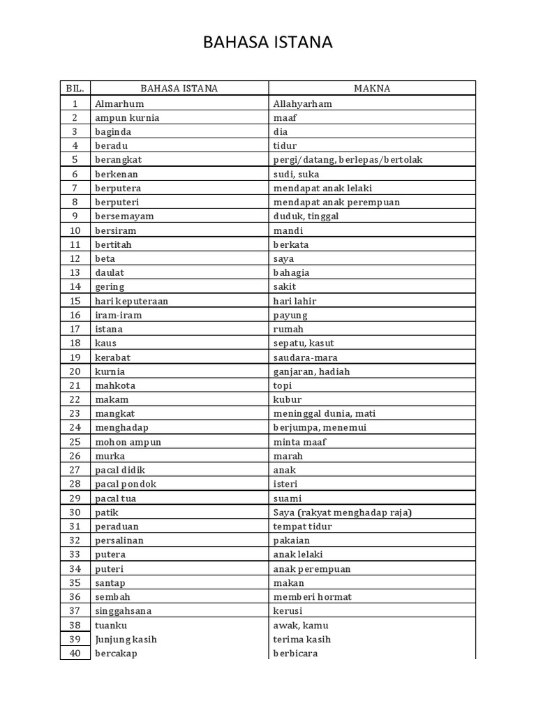Bahasa Istana Dan Maksudnya