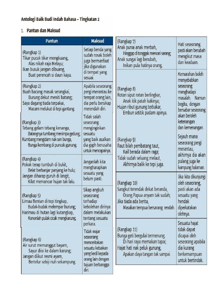 Antologi baik budi indah bahasa. Dalam persekitaran kata kata baha zain syair nasihat penghujung thamarat al muhimmah pantun kasih sayang. Dipetik daripada antologi baik budi indah bahasa tingkatan 2 arah pendidikan sdn. Antologi baik budi indah bahasa pantun alam remaja antologi komsas tingkatan 2 tahun 2016 baik budi indah bahasa pantun alam remaja.