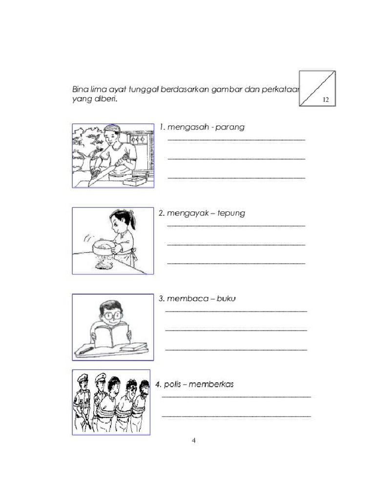 Bahasa melayu tahun 2 kata kerja kata kerja tahun 2 imbuhan men bina ayat 2. Abang menolak sebuah kereta sorong. Modul latihan ini sesuai untuk membantu murid yang lemah dalam bm untuk menguasai kemahiran penulisan bm. Latihan membina ayat berdasarkan gambar.