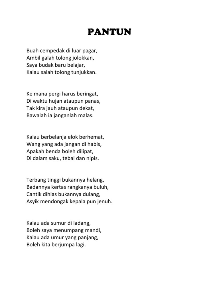 Saya budak baru belajar. Ambil galah tolong jolokkan. Masing masing mempunyai maksud tertentu apabila ditambah huruf. Why not even as standard one pupils we were already exposed to this pantun.