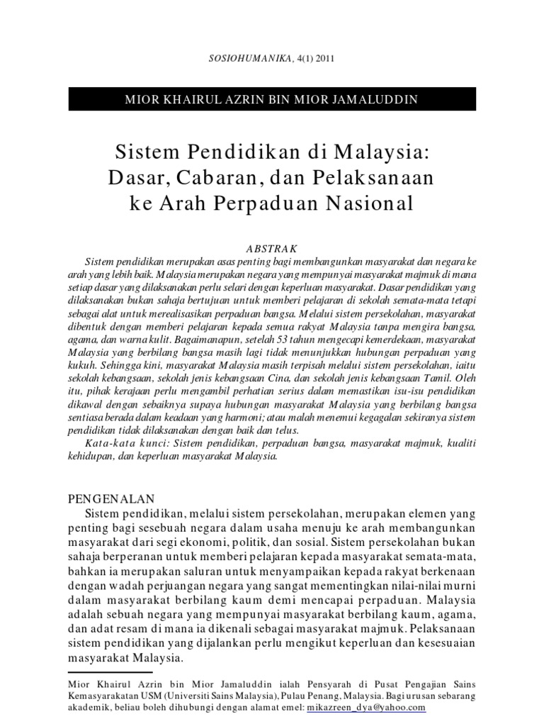 Minda masagi press owned by aspensi issn 1979 0112. Jurnal pendidikan sains sosial dan kemanusiaan vol 4 no 1 mei pp 33 48. Sistem pendidikan di malaysia.