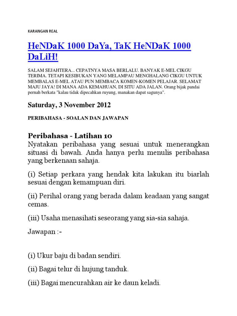 Contoh Ayat Kalau Tidak Dipecahkan Ruyung Manakan Dapat Sagunya