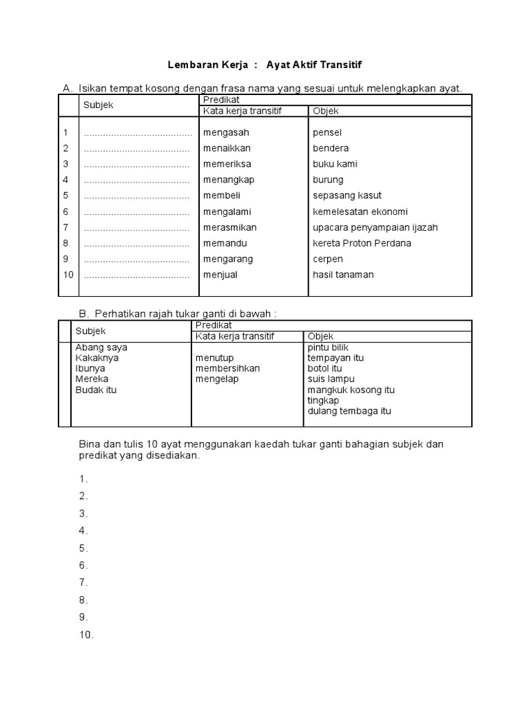 Contoh Ayat Kata Kerja Aktif Transitif