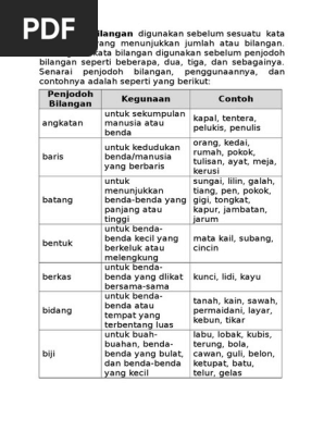 Penjodoh bilangan ialah perkataan yang digunakan berpasangan dengan kata nama untuk membilang atau menyebut kata nama itu. Benda yang diikat bersama sama atau sekumpul seperti kayu api rotan lidi buluh dan sebagainya. Wicky 21 september 2018 at 21 24.