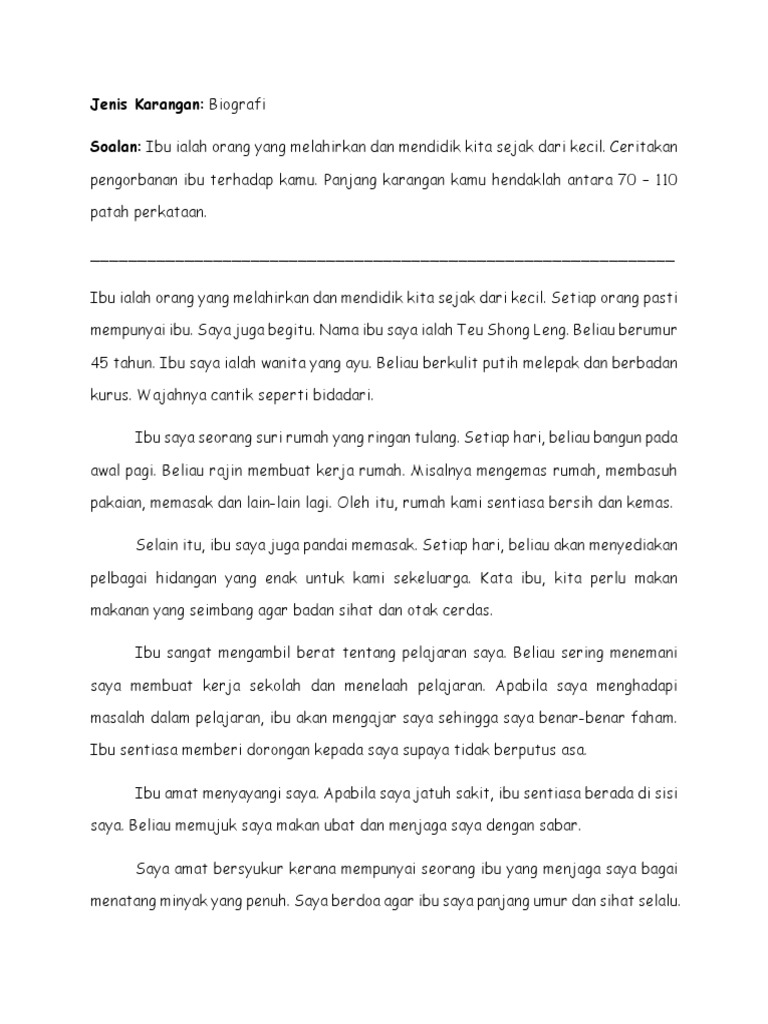 Contoh karangan biografi ibu saya tahun 5. Ibu saya bernama puan shakimah binti ahmad ibu saya berusia 38 tahun ibu saya merupakan anak kelima daripada lima orang adik beradik. 9 contoh aktiviti dalam kelas. Ibuku pertama kali sekolah di tk di tempatnya. Beliau berkulit hitam manis dan berbadan sederhana.