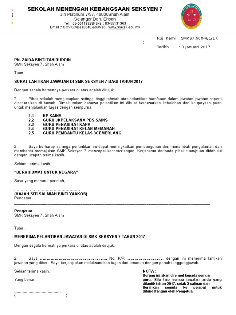 Contoh surat lantikan jawatan. Surat pengesahan dan sokongan majikan. Nama jabatan huruf besar. You are on page 1 of 2. Melalui satu surat siaran bilangan 6 tahun 2020 kementerian pendidikan malaysia memaklumkan berkenaan pindaan takwim penggal dan cuti pe.