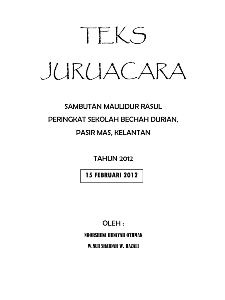 Contoh teks terbaik dan lengkap dari mula program sehingga akhir penutup. Bagi memastikan kelancaran majlis kita pada hari ini saya memohon agar para pelajar memberikan tumpuan pada majlis yang akan dijalankan sebentar lagi. Sambutan maulidur rasul 2013 m a jli s sa m b u t an m a u li d u r ras u l p e r i n g k a t smk kulai besar kulaijaya johor. Berikut adalah teks pengacara majlis mc untuk majlis sambutan maulidur rasul peringkat sekolah menengah dan rendah.