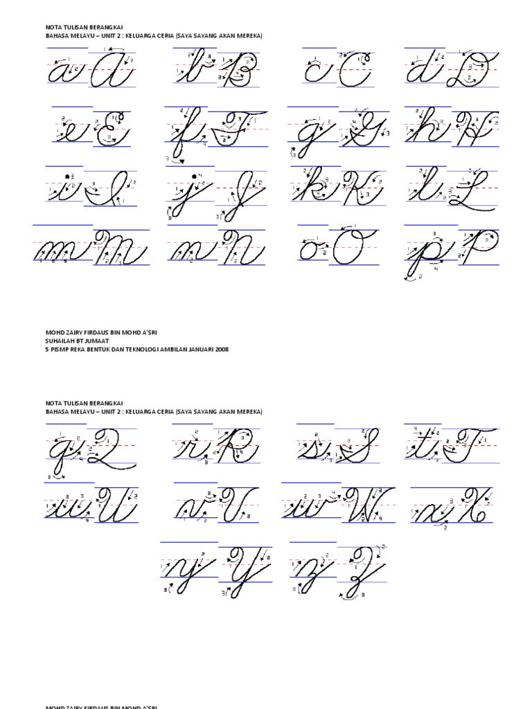 Cursive tulisan berangkai in english. Mereka yang menulis dengan bentuk tulisan berangkai ini juga mempunyai jiwa yang halus lembut lebih kepada emosi dan mudah dibentuk kerana bila menulis secara sambung kecenderungan kemiringan tulisan akan lebih ke kanan. It s pretty cool more than 100 000 text symbols including everything from cursive alphabets like you see above to weird emoji symbols representing thousands of different objects. Here are some examples that you ll see if you put some normal text in the first input box. Download 51830 fonts in 25456 families.
