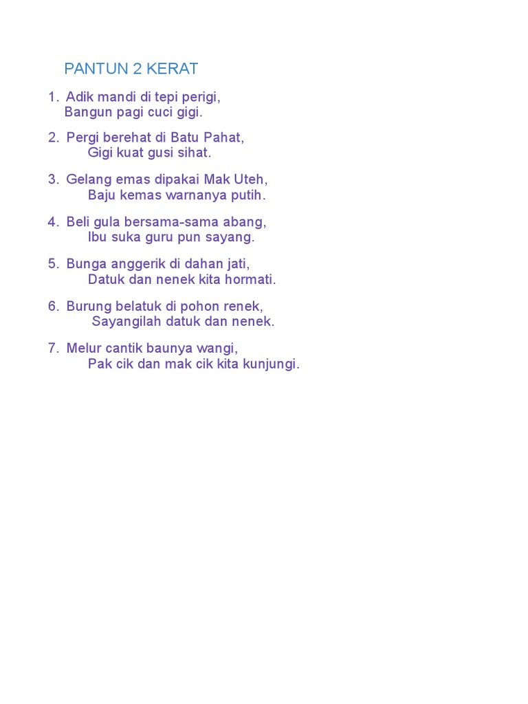 Empat kerat pantun 2 kerat untuk kawan. Pantun empat kerat agama mohd. Pantun empat kerat ini yang kami berikan untuk kalian semua pantun empat kerat yang mana sangat bermanfaat untuk anda pantun empat kerat tersebut dan ini merupakan hal yang sangat bermanfaat sekali setiap harinya untuk bisa anda lakukan di rumah disekolah dan dimana saja sepantasnya yang kamu ingin sampaikan pantun empat kerat tersebut kepada yang memang membutuhkan pantun empat kerat ini. Apatah lagi dengan unsur kelucuan yang diselitkan maka ia mudah diingati baik untuk yang berusia dan juga di kalangan anak anak muda. Tapi yang kunanti tak kunjung datang.