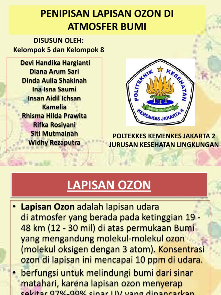 Lapisan ozon berada di jarak 15 35 kilometer di atas permukaan bumi. Penyebab rusaknya atau menipisnya lapisan ozon yaitu oleh bahan perusak ozon bpo yang diemisikan dari berbagai kegiatan baik dalam menggunakan atau. Ya lapisan ozon yang kita punyai di atmosfer bumi kita memang keadaannya semakin lama semakin memburuk. Kerusakan lapisan ozon dapat diartikan sebagai penipisan ataupun penebalan lapisan ozon.
