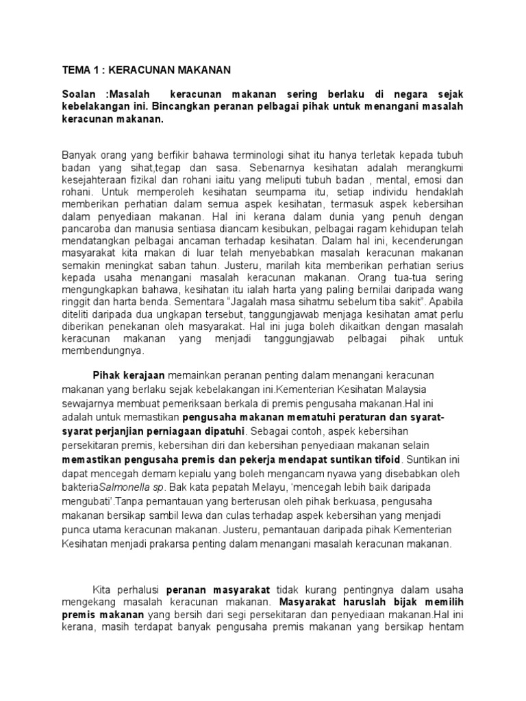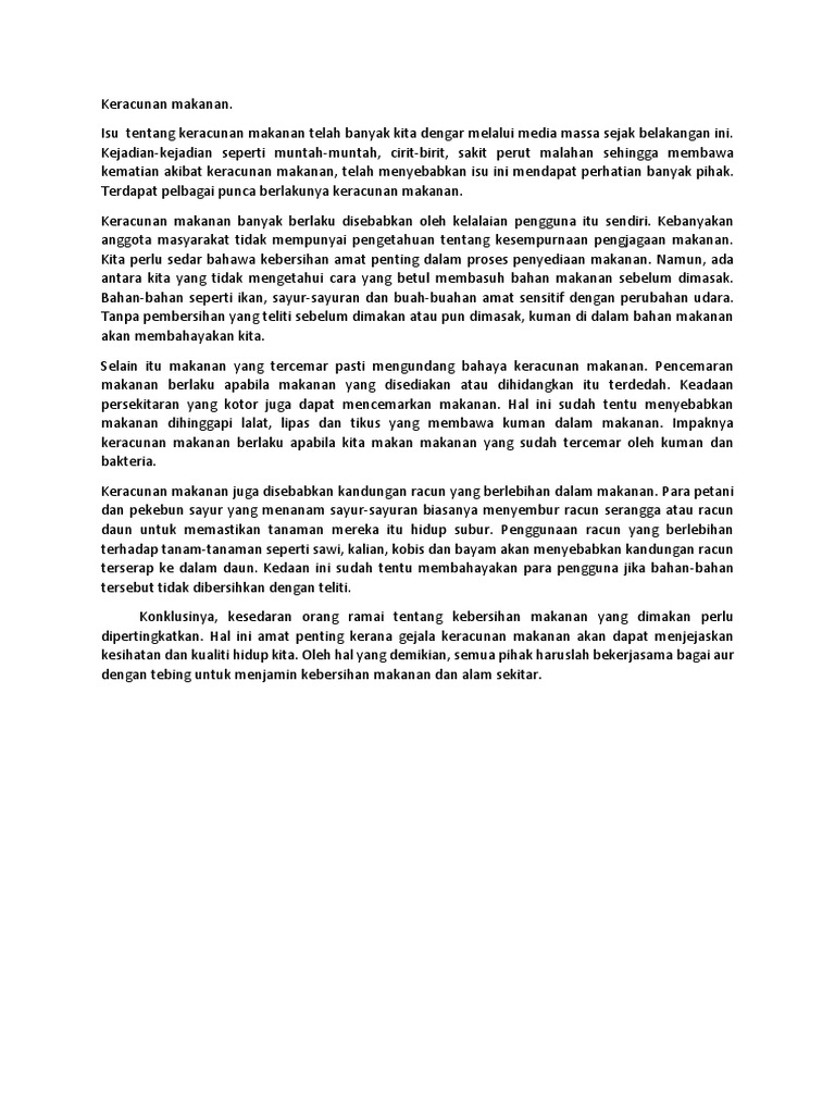 Karangan punca keracunan makanan stpm. Punca dan usaha untuk menangani keracunan makanan dalam kalangan murid sekolah. Dasawarsa ini jumlah keracunan makanan semakin meningkat secara drastik. Kejadian kejadian seperti muntah muntah cirit birit sakit perut malahan sehingga membawa kematian akibat keracunan makanan telah menyebabkan isu ini mendapat perhatian banyak pihak. Kes keracunan makanan fokus utama.