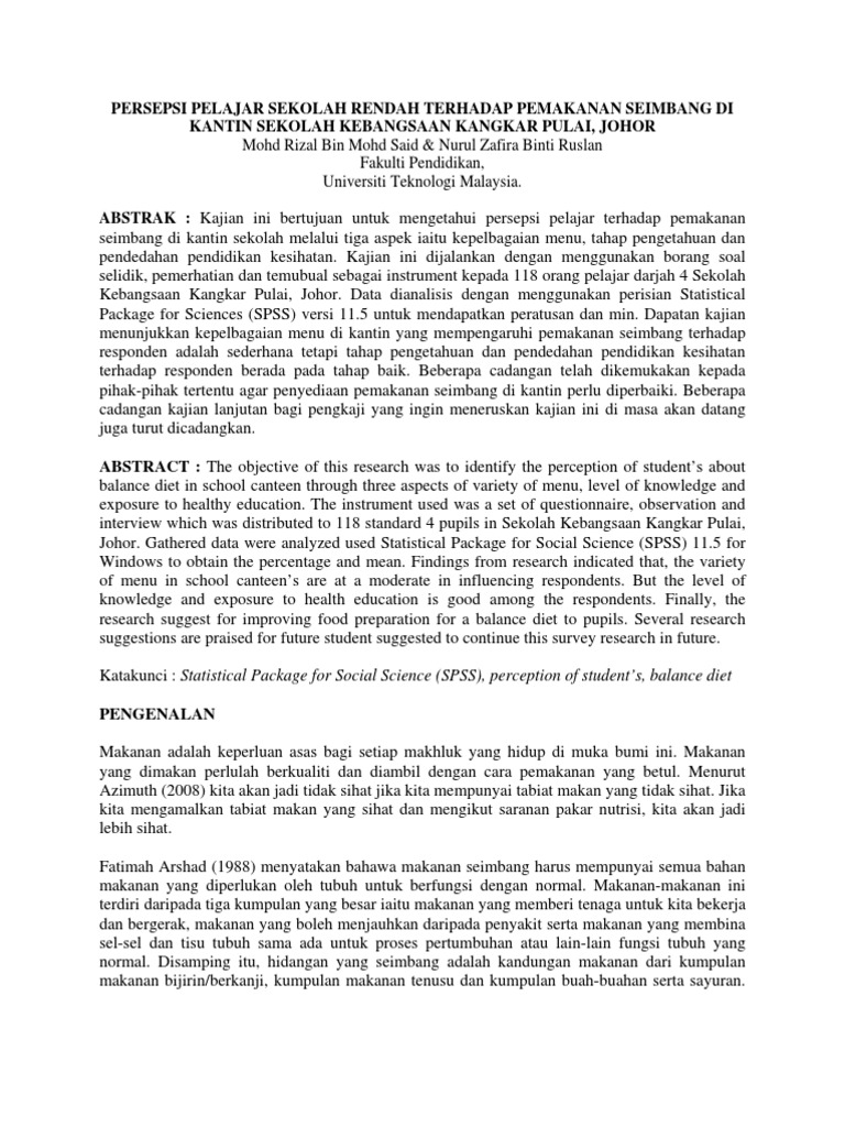 Kesimpulan amalan pemakanan yang sihat. Kesimpulan dan saranan 5 1. Pengawalan pemakanan sebegi menjadikan tubuh seseorang itu tidak terlalu gemuk dan memudahkan mereka untuk menjalankan pelbagai aktiviti terutama aktiviti senaman yang mampu menyihatkan badan pula. Skop yang dikaji dalam kajian ini ialah menentukan tahap pengetahuan pelajar terhadap. Bagi kebanyakan penyakit tertentu amalan pemakanan seseorang mempunyai kaitan rapat dengan penyakit yang dihidapi.