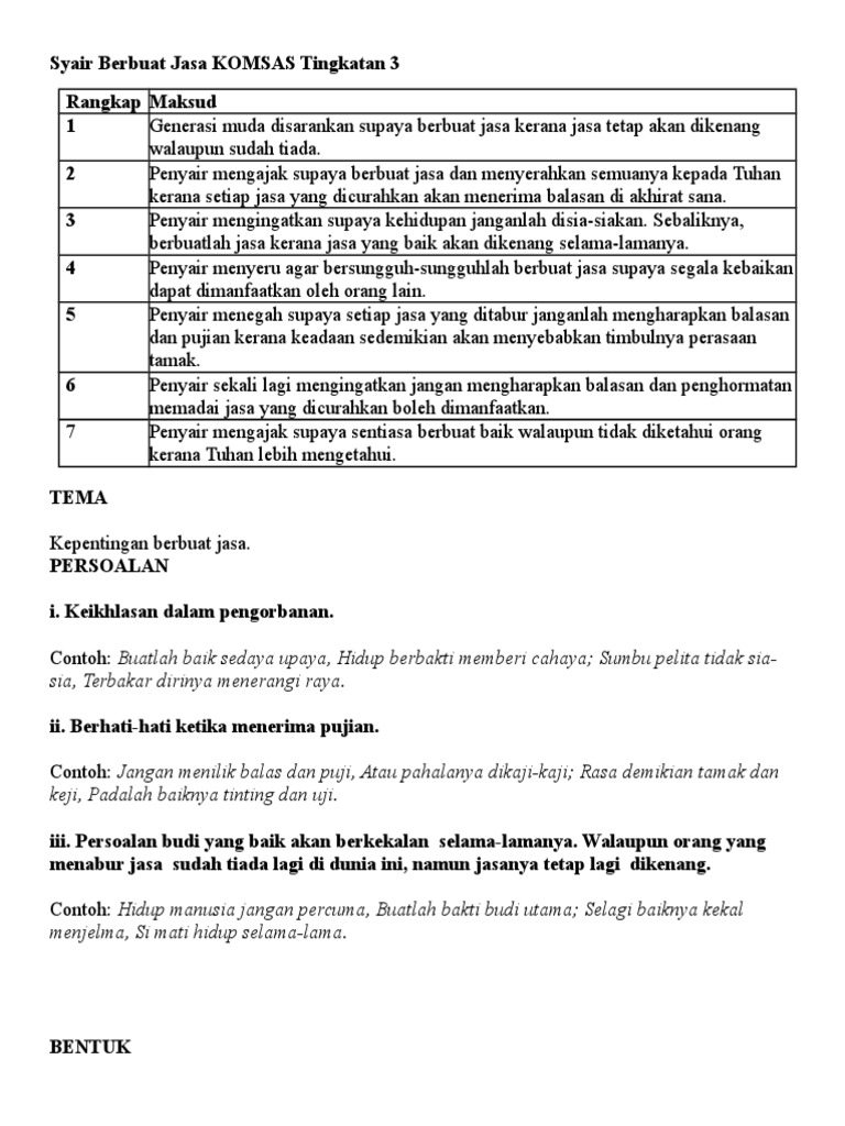 Komsas tingkatan 1 sila share kepada kawan kawan dengan menekan butang di bawah maksud sajak tema persoalan bentuk gaya bahasa nilai pengajaran k1. Malah setelah meninggal dunia pun banyak jasa dan bakti kita masih dapat dimanfaatkan oleh orang lain. Bertanggungjawab terhadap diri sendiri dan orang lain 2. Sajak kita umpama sehelai daun.