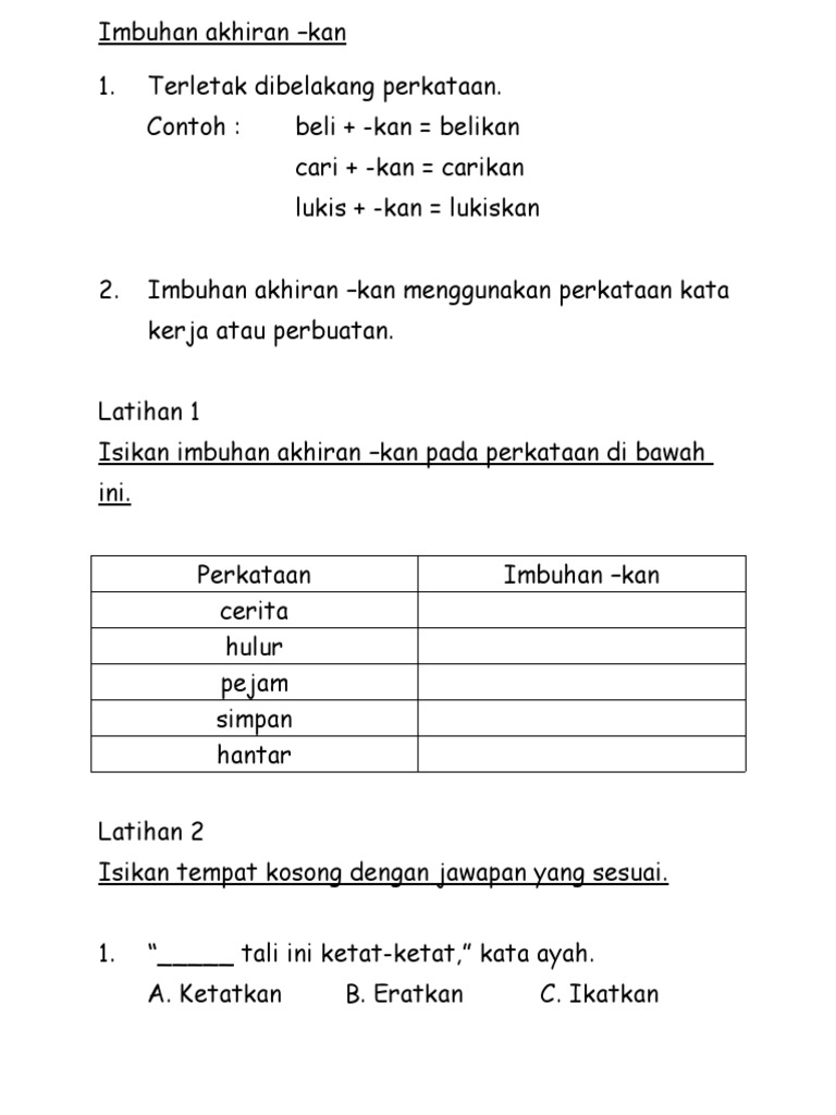 Simpan simpan imbuhan apitan bahasa melayu tahun 4 untuk nanti. Latihan yang diberi oleh cikgunya. 0 0 mendukung 0 0 menolak. Kssr tatabahasa tahun 2 praktis 7 tmbuhan awatan akhiran aanrqprtan n lengkopkon perkotoon di dolom kurungon dengon o imbuhon opilon uong betul.