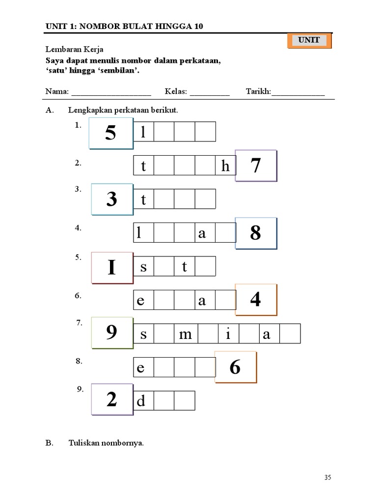 Latihan menulis nombor dalam perkataan prasekolah. Latihan kemahiran asas menulis nombor perkongsian kali ini adalah melibatkan kemahiran asa menulis nombor sesuai untuk anak anak di peringkat prasekolah dan tahun 1 dan tahun 2. Latihan ini membolehkan murid menguasai suku kata terbuka kv suku kata tertutup kvk dan juga perkataan dua suku kata kv kvk. Tajuk nombor tahun 1 nombor 1 10 urutan nombor bcsk tahun 1 nombor menulis nombor tahun 1 susun nombor urutan menaik. Tahun 4 62 088 ribu enam puluh dua ribu lapan puluh lapan contoh.