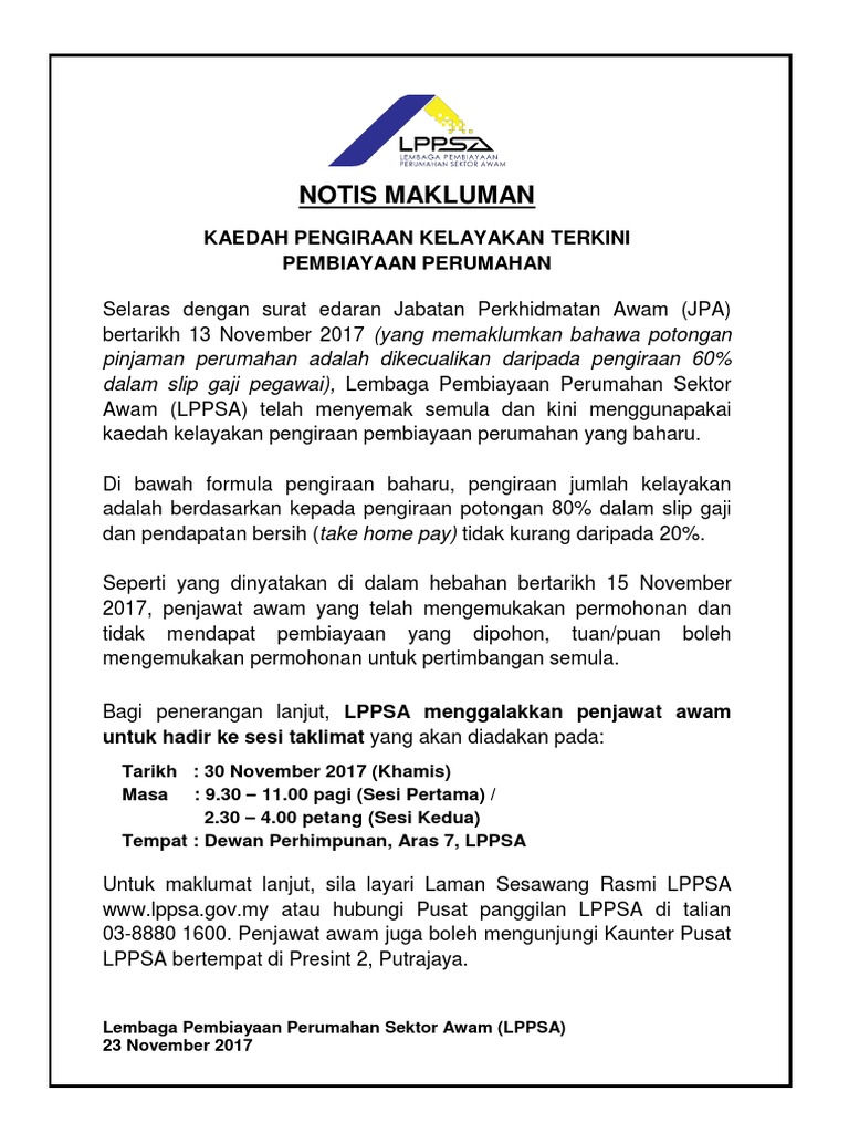Pusat panggilan utama. Log masuk ke portal permohonan pembiayaan lppsa. Awam jpa على تويتر. Lembaga pembiayaan perumahan sektor awam lppsa kompleks kementerian kewangan no 9 persiaran perdana presint 2 pusat pentadbiran kerajaan persekutuan 62592 putrajaya.