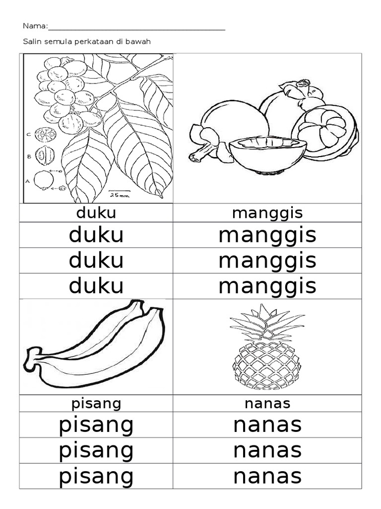 Kanak kanak boleh menamakan buah buahan dan sayur. Pelbagai pilihan buah buahan untuk anda cetak. See more ideas about bahasa melayu tadika kertas kerja prasekolah. Ini kerana buah buahan tempatan tidak memerlukan kos yang tinggi untuk dipasarkan seperti kos pengangkutan berbanding buah buahan yang diimport.