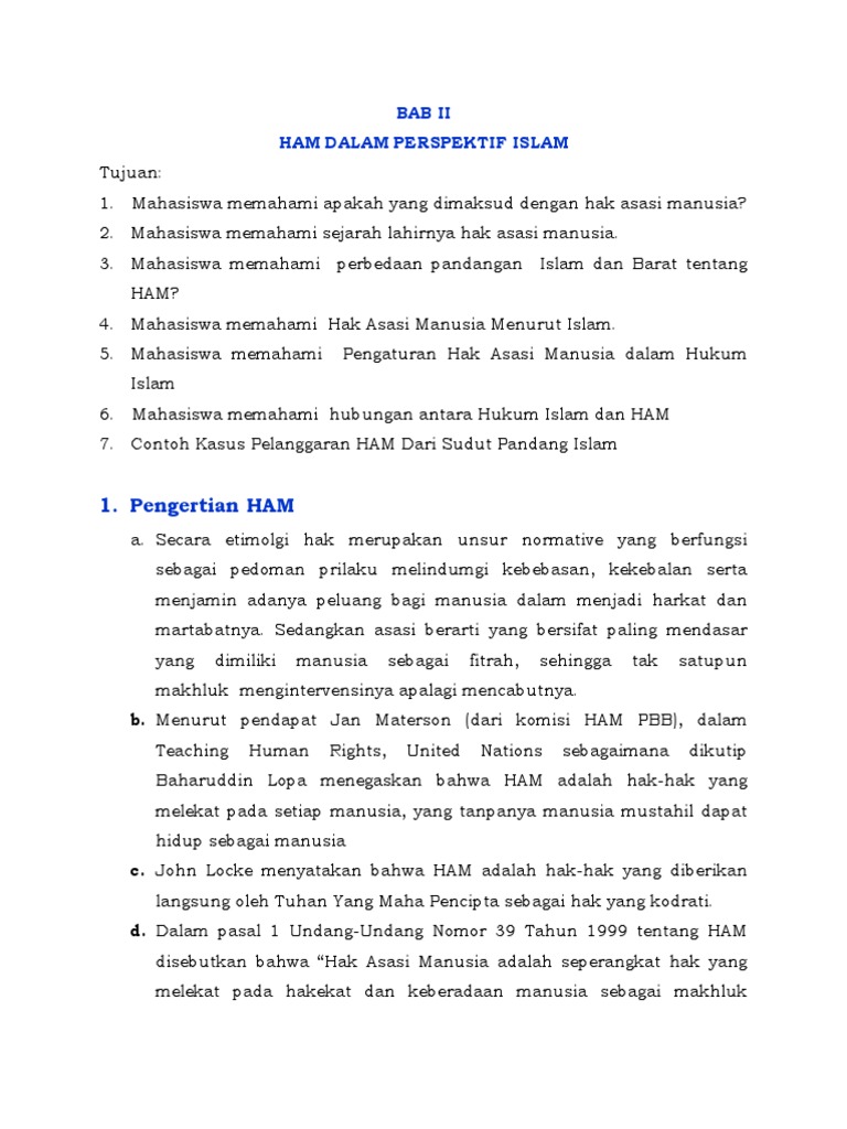 Maksud hak asasi manusia menurut islam. Oleh karena itu negara bukan saja menahan diri dari menyentuh hak hak asasi tersebut melainkan juga mempunyai kewajiban untuk melindungi dan menjamin hak hak tersebut. Islam sangat menjunjung tinggi hak asasi setiap manusia meskipun di dalam praktiknya terdapat perbedaan perbedaan yang cukup mencolok antara ham menurut islam dan ham menurut barat. Dalam islam seluruh hak asasi merupakan kewajiban bagi negara maupun individu yang tidak boleh diabaikan. Pengertian hak asasi manusia ham menurut para ahli.
