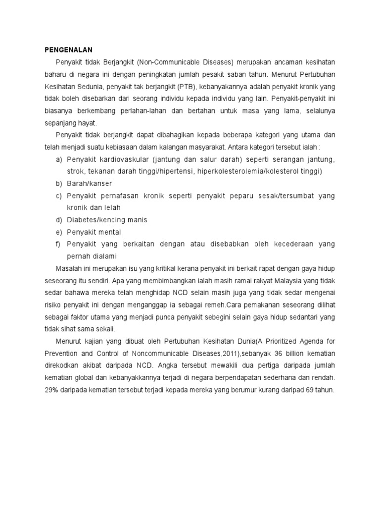 Penyakit tidak berjangkit dan risiko anda. Aduhaiiii lama sungguh entry ni tersimpan dalam draft uhuhuhu bila semak balik draft barulah teringat nak publish dan edit edit semula so selamat membaca sharing dari kospen ni tau semoga bermanfaat untuk semua. Ketahui maklumat perubatan lengkap dan sahih tentang simptom punca faktor risiko diagnosis dan rawatan penyakit tidak berjangkit ncd. Penyakit berjangkit ini adalah istilah umum yang merujuk kepada penyakit yang disebabkan oleh mikro organisma yang disebarkan dari manusia ke manusia dari kahak std hepatitis atau daripada gigitan serangga vektor seperti nyamuk denggi atau melalui air dan makanan yang tercemar who.
