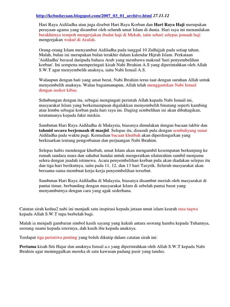 Perayaan ini merupakan perayaan terbesar di dalam islam selain aidilfitri yang disambut pada setiap 1 syawal aidiladha disambut pada hari ke 10 ke 11 ke 12 dan ke 13 bulan zulhijjah setiap tahun. عيد الأضحى eid ul adha atau hari raya haji merupakan perayaan yang dirayakan oleh umat islam di seluruh dunia. Hari raya aidilfitri merupakan perayaan yang dirayakan oleh umat islam di seluruh dunia bagi meraikan kemenangan pada bulan ramadhan yang mana umat islam telah menjalani ibadat puasa dengan tekun betul ke tekun dan ikhlas yang ni confirm bukan semua. Hari raya aidilfitri pada tanggal 1 syawal tahun hijrah seluruh masyarakat islam di dunia akan menyambut hari raya aidilfitri.
