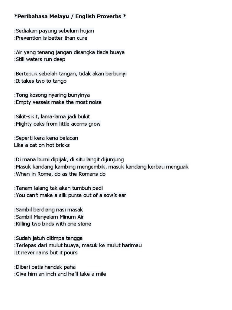 The entries will be a mix of english and malay depending on the language the articles were written in as well as the language i intend to write in. Peribahasa melayu yang paling popular setiap hari. Be it english chinese bm or otherwise is a constituent part that builds a nation allowing people of different backgrounds to mingle and interact and from there establish some common understanding and national solidarity. Enter a goat s shed you bleat.