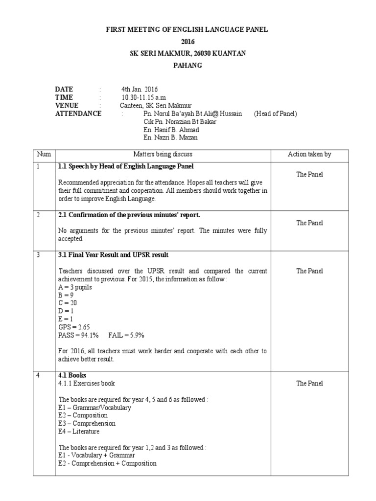 Contoh minit mesyuarat panitia bm kali pertama kemuncuppadang opel. Unknown september 9 2019 at 6 35 pm. 1400 1630 venue. Semakan semula sop 6.