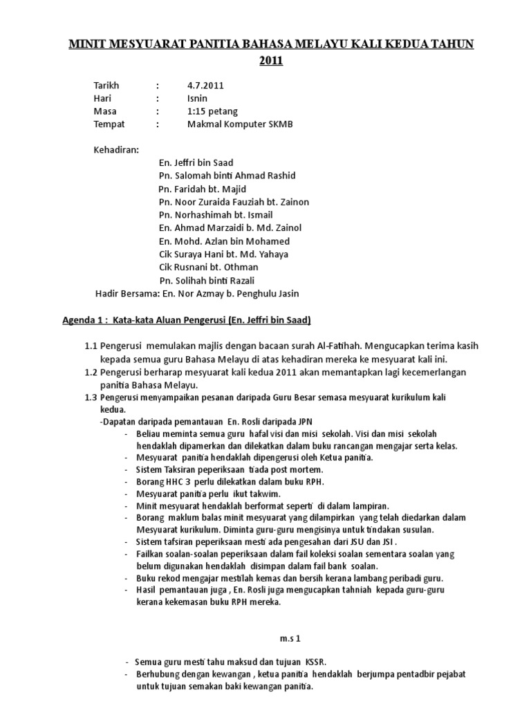 1 1 pengerusi mengucapkan terima kasih atas kedatangan guru guru bahasa malaysia. Minit mesyuarat panitia bahasa melayu kali pertama 2019. 1 30 petang tempat. October 15 2020 0.
