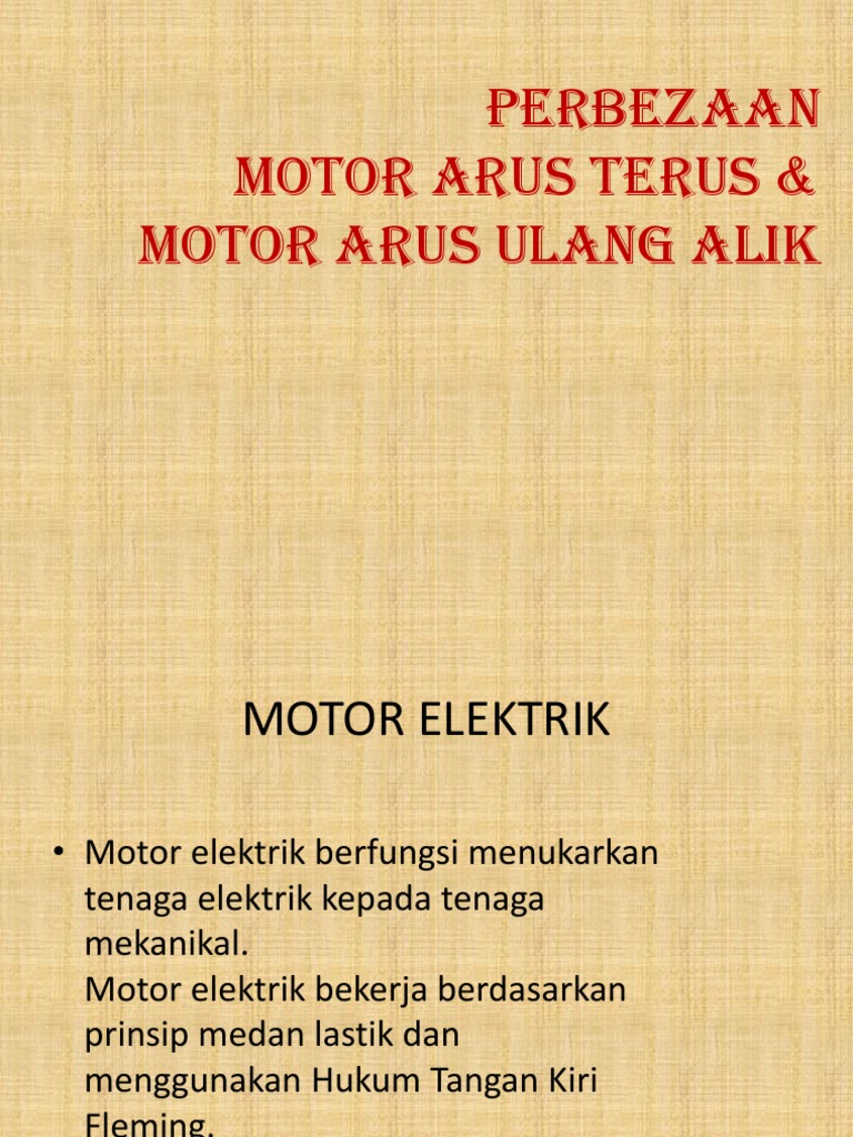 Slide 7 sumber arus ulang aliksumber bagi arus ulang 1 pengaliralik ialah penjana yang begerak fluks medan merupakan sebuah magnet pegun pengalir mesin yang terdapat 2 cara untuk memotong fluks menggunakan prinsip menjana voltan arus aruhan yang ulang alik a u. Apabila arus ulang alik yang melalui gelung medan atau gelung pengujaan cuba meningkat ia akan mengaruhkan suatu arus di dalam gelung telau dengan berasaskan tindakbalas alatubah. Perbezaan antara kedua dua jenis motor ini amat ketara terutama pada binaan belitan serta prinsip kendaliannya. Bagi memudahkan aplikasi tertentu yang memerlukan putaran berlawanan arah jam contohnya pergerakan pagar elektrik satu kaedah digunakan untuk merterbalikkan putaran tersebut.