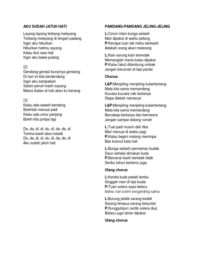 Cincin intan bunga selasih mari dipakai di waktu petang kenapa tuan tak mahu berkasih adakah orang akan melarang. Gm d cm am g a em chords for sm salim siti nurhaliza pandang pandang jeling jeling with capo transposer play along with guitar piano ukulele mandolin. Lirik pandang pandang oleh jeling jeling. Lihat lirik lagu oleh.