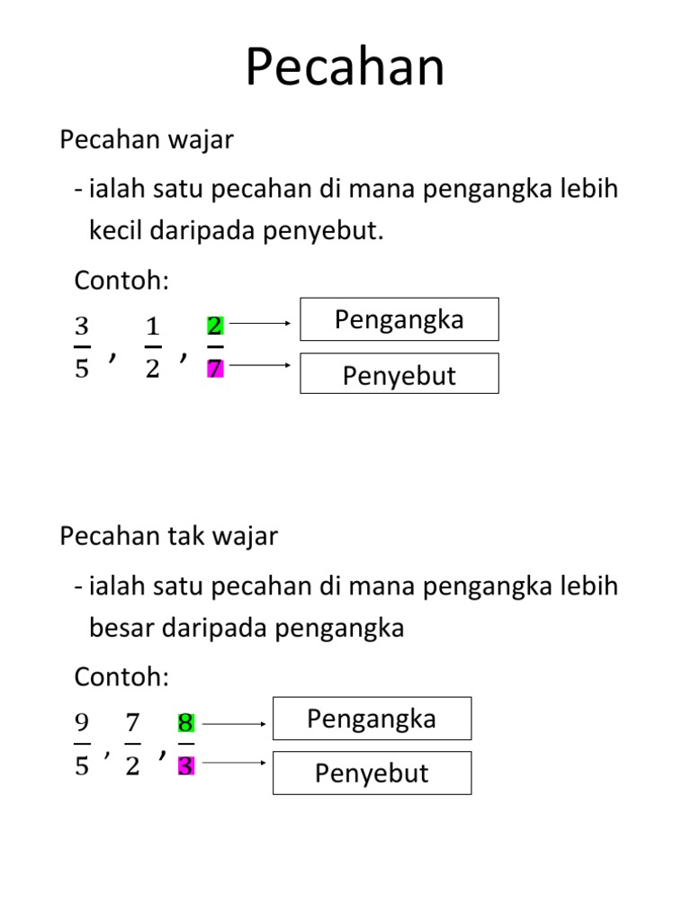 Apakah yang dimaksudkan dengan pecahan wajar dan pecahan tidak wajar.