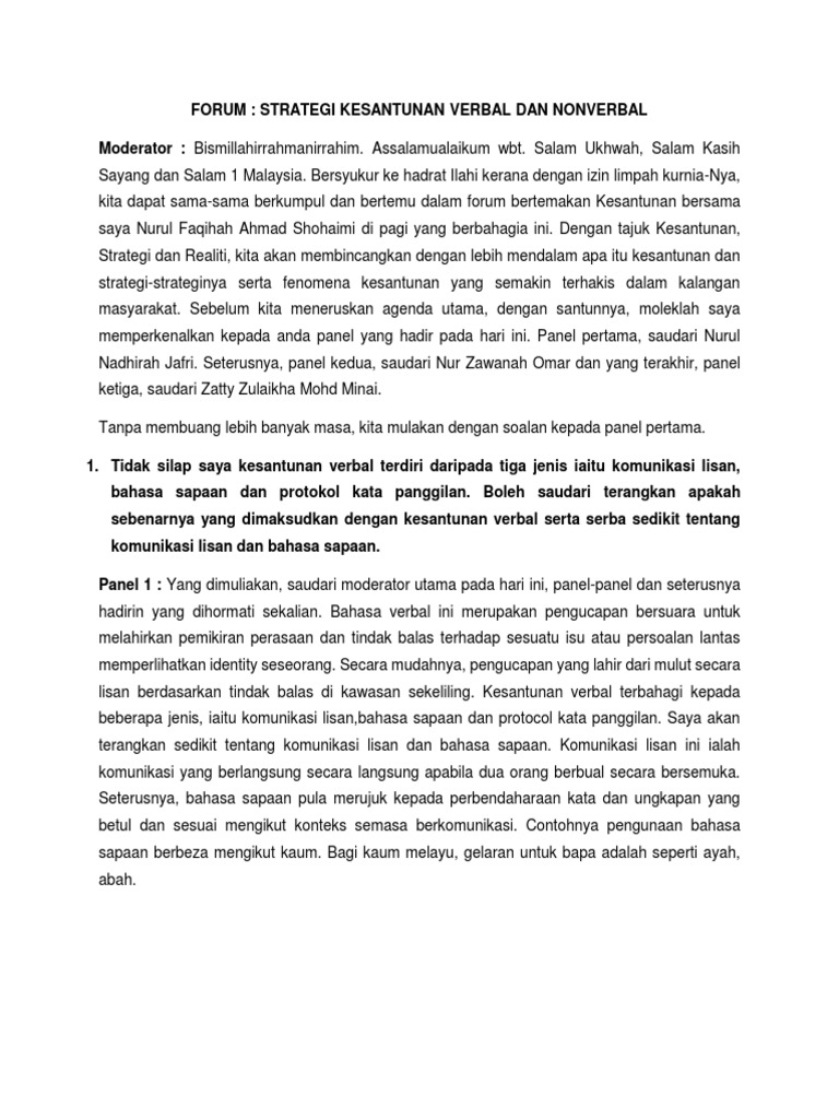 Perbezaan kesantunan verbal dan non verbal. Komunikasi verbal dan non verbal secara sederhana komununikasi adalah proses pertukaran pikiran atau penyampaian pesan dari penyebar pesan komunikator ke penerima pesan komunikan dengan tujuan tertentu. Struktur dan derajat kepentingan. Komunikatif lisan yang disepadukan dengan bahasa tubuh akan lebih berkesan dan maksud yang disampaikan lebih jelas. Kesantunan non verbal kesantunan nonverbal ialah komunikasi bahasa tanpa kata kata atau dikenali sebagai bahasa tubuh dengan cara beradab dan sopan bahasa tubuh merupakan proses pertukaran fikiran dan idea di mana mesej yang disampaikan seperti melalui isyarat ekspresi wajah pandangan mata sentuhan dan gerakan tubuh.