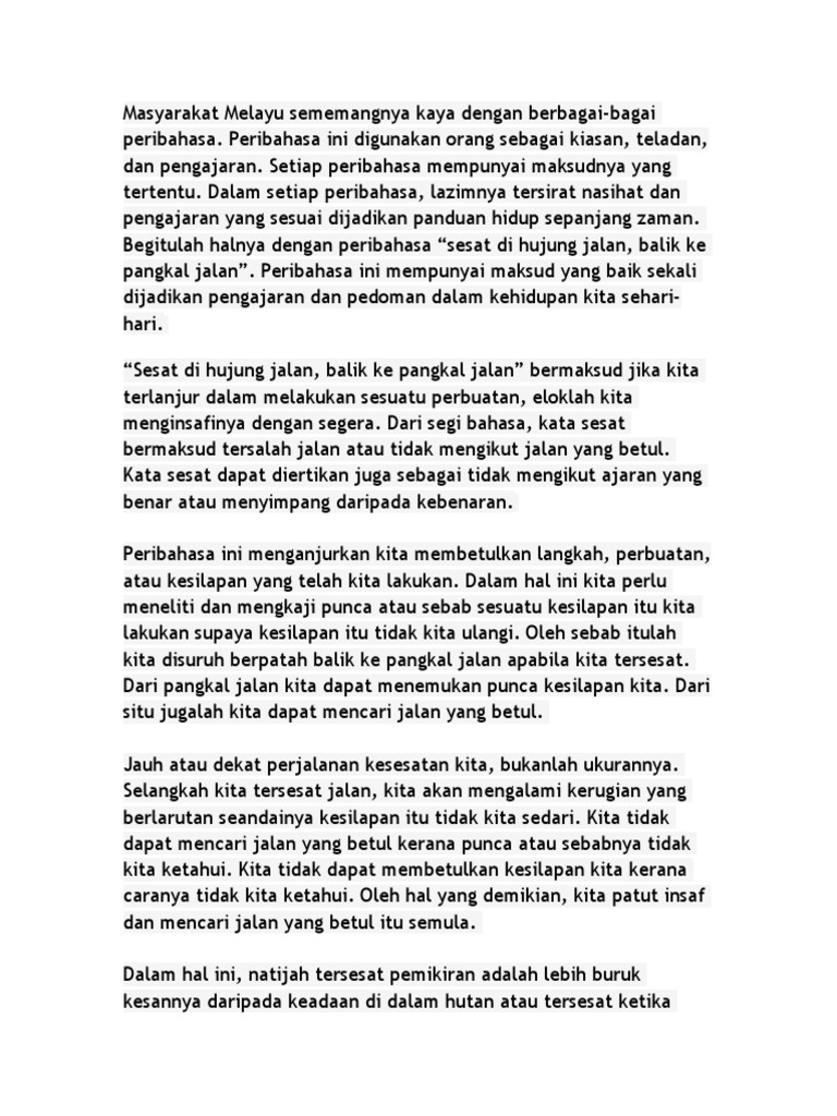 Peribahasa Sesat Di Hujung Jalan Balik Ke Pangkal Jalan