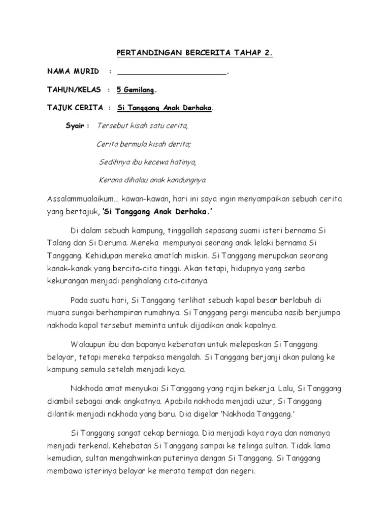 Adapun kemampuannya hanyalah mencari rezeki dengan menebang pokok yang sederhana besarnya untuk dijual sebagai kayu api. Cerita ini saya ubahsuai dalam pertandingan bercerita bahasa melayu kanak kanak prasekolah tahun 2009 muhammad danish bin saipudin mendapat tempat ke 3 peringkat zon. Rusa itu berasa bangga melihat tanduknya yang cantik. Nabi nuh merupakan nabi yang ke 4 selepas nabi adam idris dan syith.