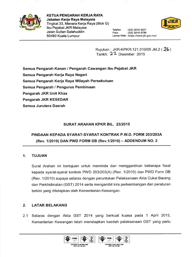 2007 published by jabatan kerja raya jkr. Pwd form db rev. 1 2010 yang antara lain menyatakan kerja kerja yang telah dilaksanakan. 1 2010 pdf document en cassidy morris head of project for.