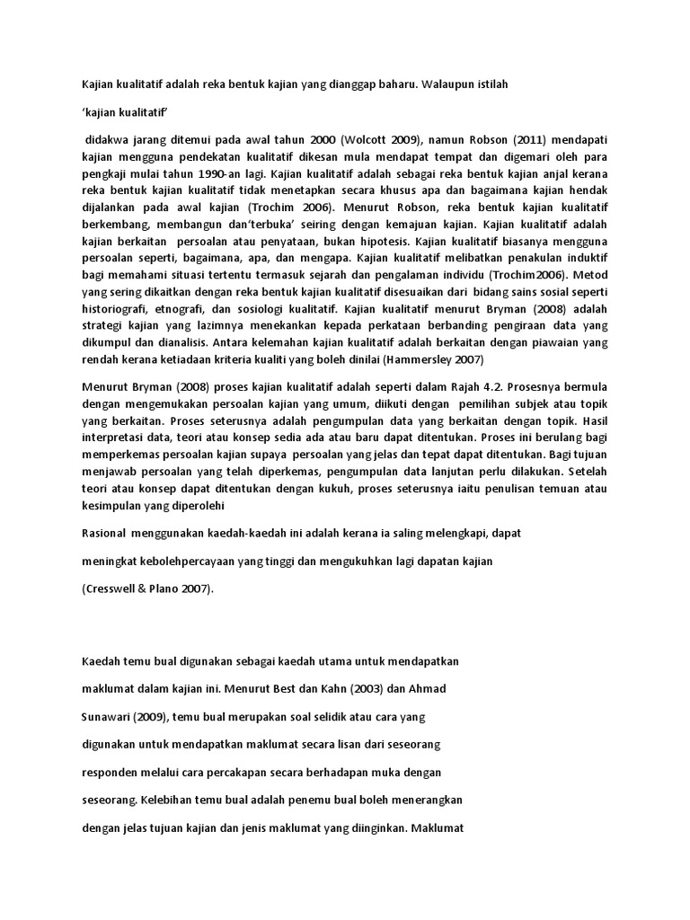 Kajian ini menggunakan kaedah kualitatif sepenuhnya dan reka bentuk kajian ini adalah reka bentuk kajian kes dengan menggunakan kaedah temu bual secara bersemuka kamarul azmi 2012. Dalam kajian yang diklasifikasikan oleh mohd majid konting 1998 dalam hamidah 2007 merupakan salah satu jenis kajian dalam penyelidikan deskriptif. Kajian kualitatif adalah reka bentuk kajian yang dianggap baharu. Data data yang diperolehi daripada sampel rawak ini kemudiannya dianalisis dan dipersembahkan dengan statistik perihalan dan ujian signifikan.