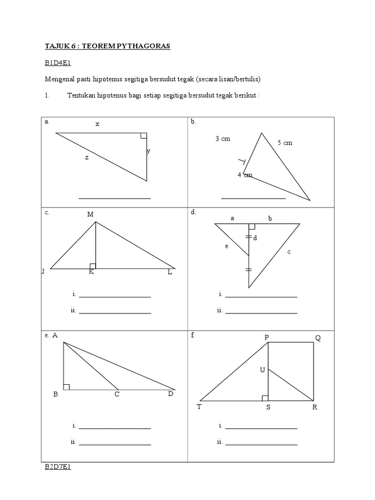 Namakan hipotenus bagi setiap segi tiga bersudut tegak berikut. Dengan itu sudut dan atau. Menurut teorem ini kuasa dua bagi bagi hipotenus garisan sendeng segi tiga bersudut tegak adalah sama dengan hasil tambah kuasa dua bagi dua sisi lain. Cara menghitung luas segitiga.