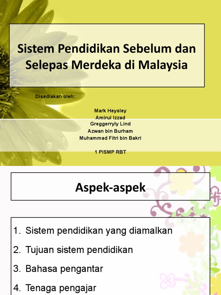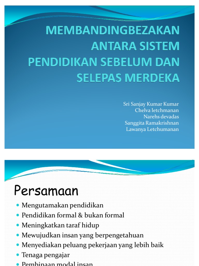 Sistem pendidikan sebelum dan selepas merdeka. Perkembangan sistem pendidikan negara sebelum dan selepas merdeka. Sistem pendidikan yang diamalkan 2. Matlamat utama sistem pendidikan penjajah ialah semata mata untuk memberi pendidikan kepada segolongan rakyat bagi membolehkan sebahagian mereka memenuhi keperluan tenaga dan ekonomi british. On blogger since january 2017.