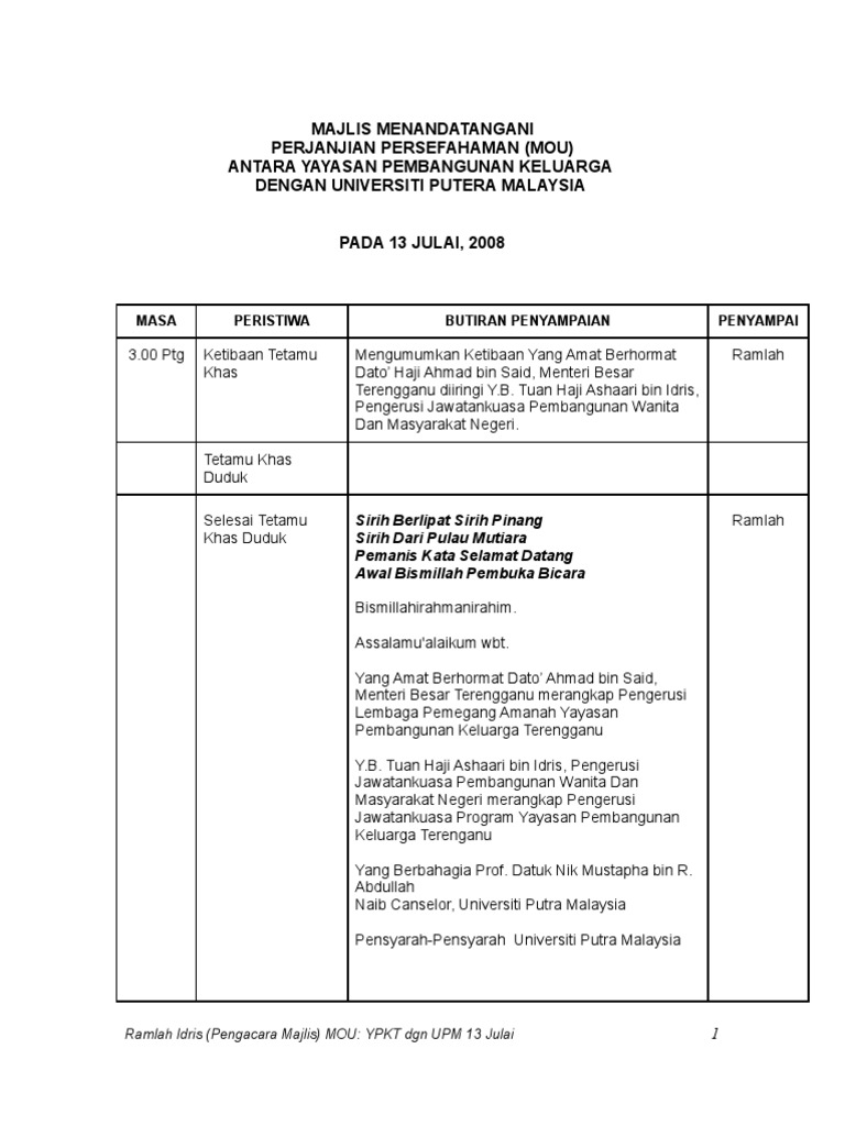 Membuat sebarang pengumuman dan penerangan penting. Berkebolehan menjadi pengacara majlis majlis rasmi dan penceramah matematik pmr dan spm daerah kluang felda felcra risda dan ypj bayaran ceramah rm 200 sejam termasuk bahan edaran pendidikkan. Koleksi teks skrip pengacara majlis untuk pelbagai majlis rasmi di sekolah cikgu raihan blog 2. Protokol dalam pengurusan majlis.