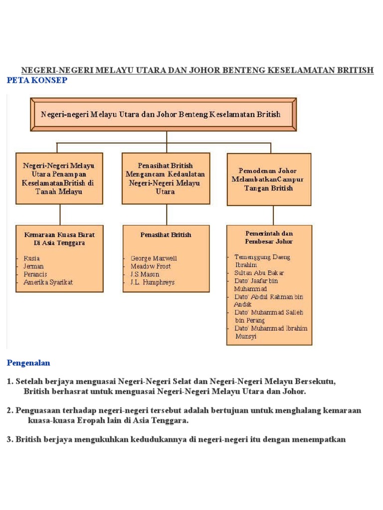Tingkatan 2 bab 3 negeri negeri melayu utara dan johor benteng keselamatan british 1. Negeri negeru melayu utara nnmu penampan keselamatan british di tanah melayu a. Johor di ambang penjajahan british sejak perjanjian persahabatan 1885 british menyusun strategi untuk menguasai johor british bimbang johor dikuasai kuasa barat lain usaha dan muslihat british untuk menguasai johor antaranya. British menubuhkan lembaga penasihat johor ii.