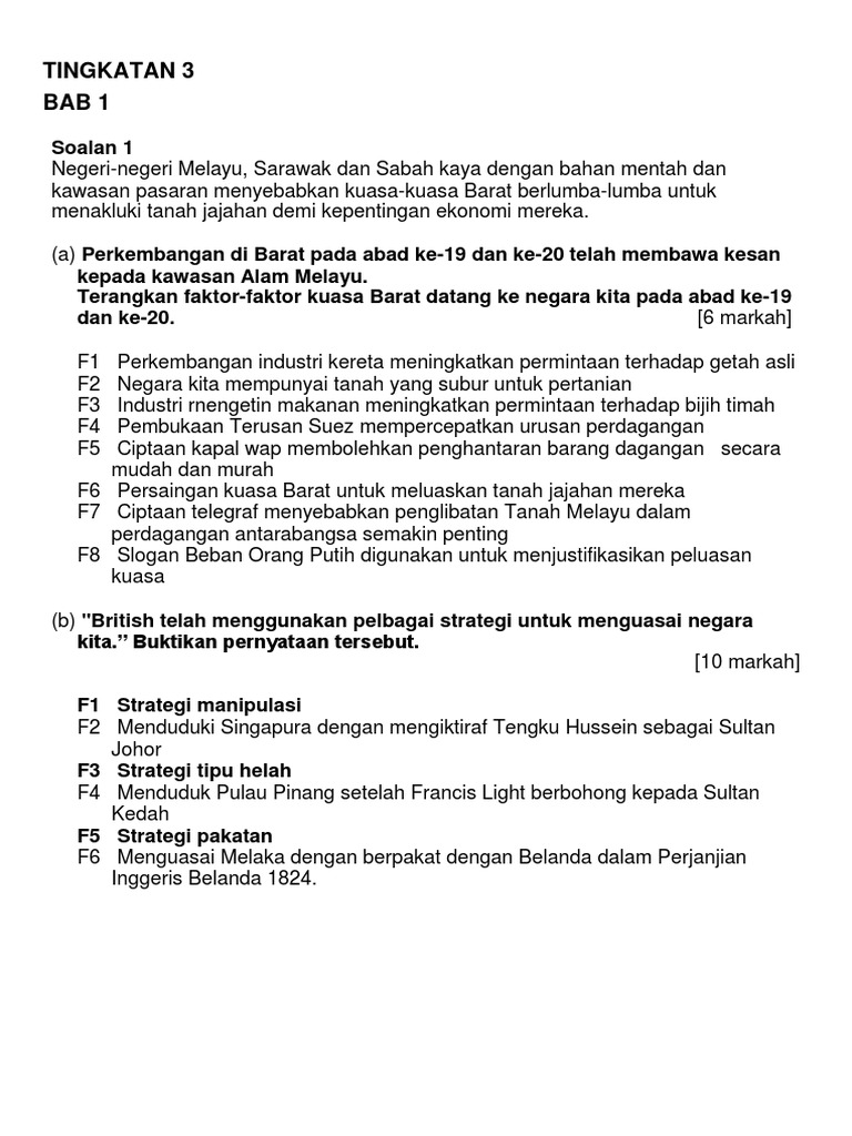 Sejarah tingkatan 3 bab 1 kedatangan kuasa barat. British juga berjaya menguasai jabatan penting seperti mahkamad tinggi jabatan polis dan pejabat tanah. B british telah menggunakan pelbagai strategi untuk menguasai negara kita buktikan pernyataan tersebut. Strategi british menguasai johor bermula sejak perjanjian persahabatan 1885 dimana hal ehwal luar johor diletakkan di bawah kawalan british.