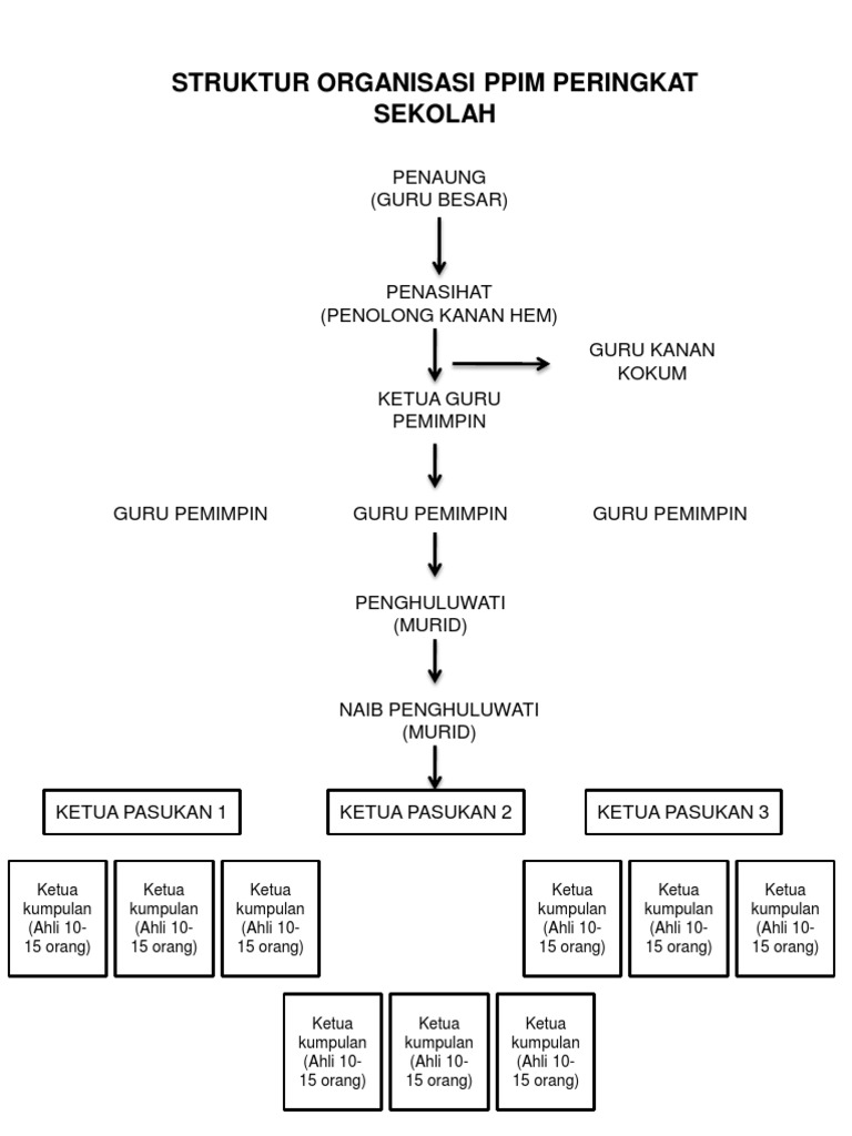 Struktur organisasi ppim peringkat sekolah. Isi kandungan folio unit beruniform semester 3 2018 18 december 4 november 14 2017 4 january 4. Borang pendaftaran ahli jawatankuasa. Penghuluwati murid naib penghuluwati murid ketua pasukan 1. Carta organisasi peringkat negeri.