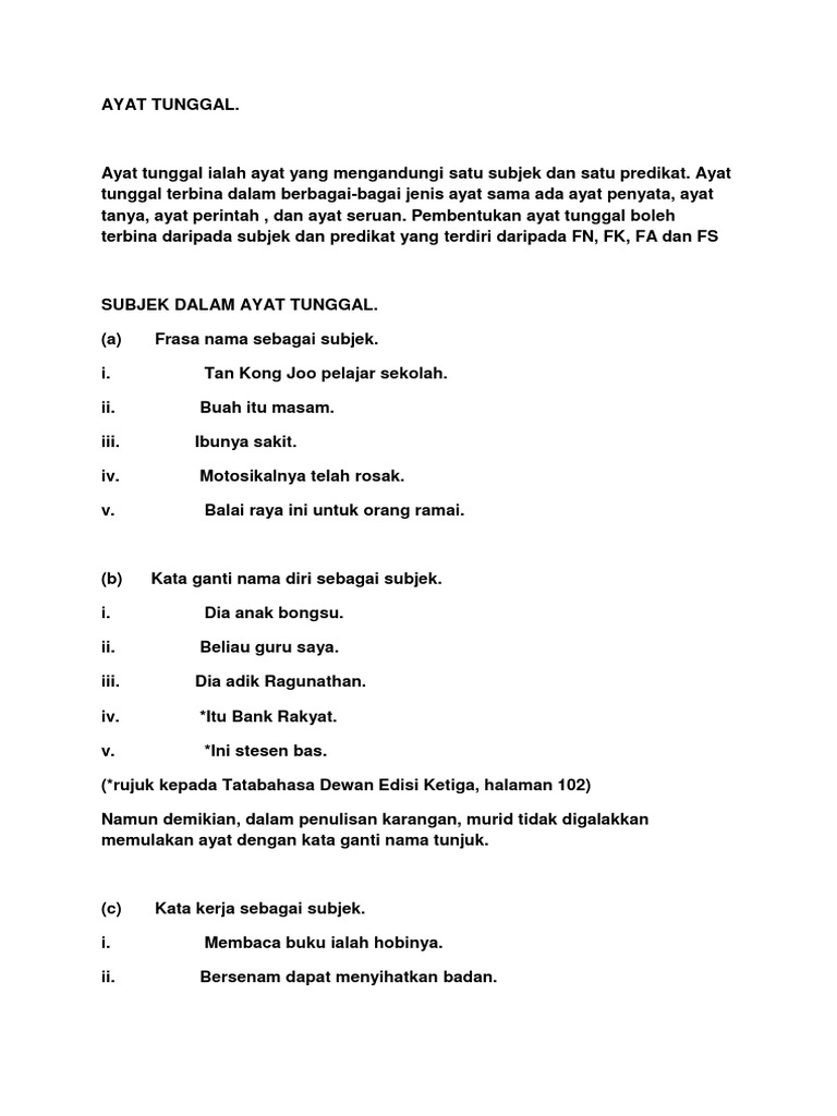 Subjek ayat tetap mendahului predikat. B ayat tanya tanpa kata tanya ayat tanya yang bentuknya sama bentuknya dengan ayat penyata tetapi berbeza oleh adanya tanda tanya pada akhir ayat itu. A ayat tanya dengan kata tany a ayat yang mengandungi kata tanya seperti beberapa bagaimana bila mengapa dan kenapa. Subjek dapat berupa noun kata benda noun phrase frase kata.